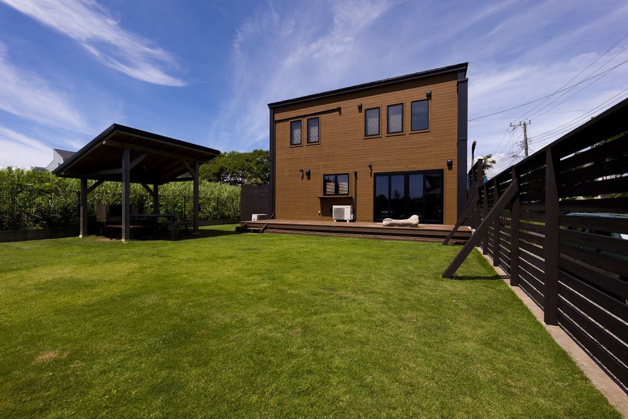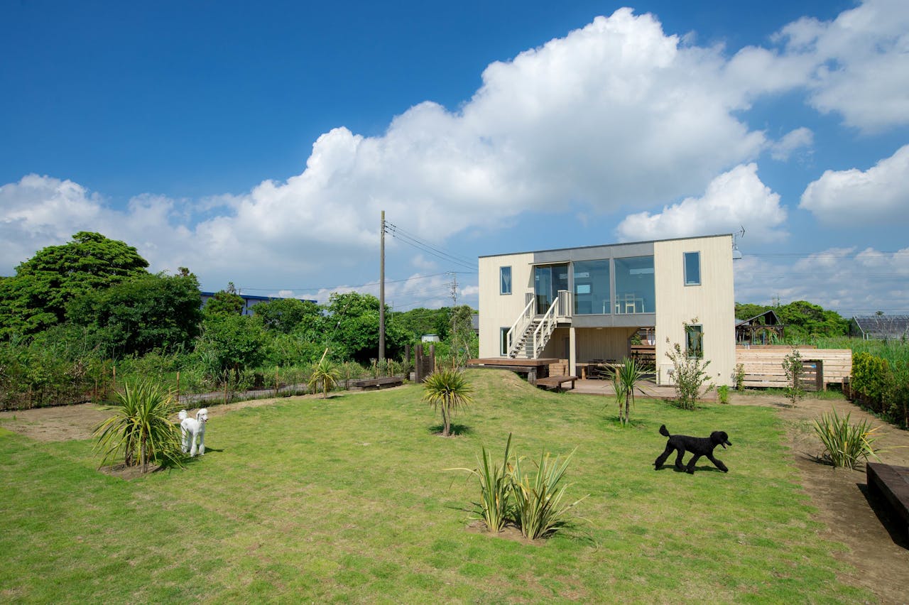 九十九里浜の南端一松海岸まで徒歩4分の距離にある「Beds and Dog run」は、204平米の広々とした芝生のドッグランが付いた貸別荘。