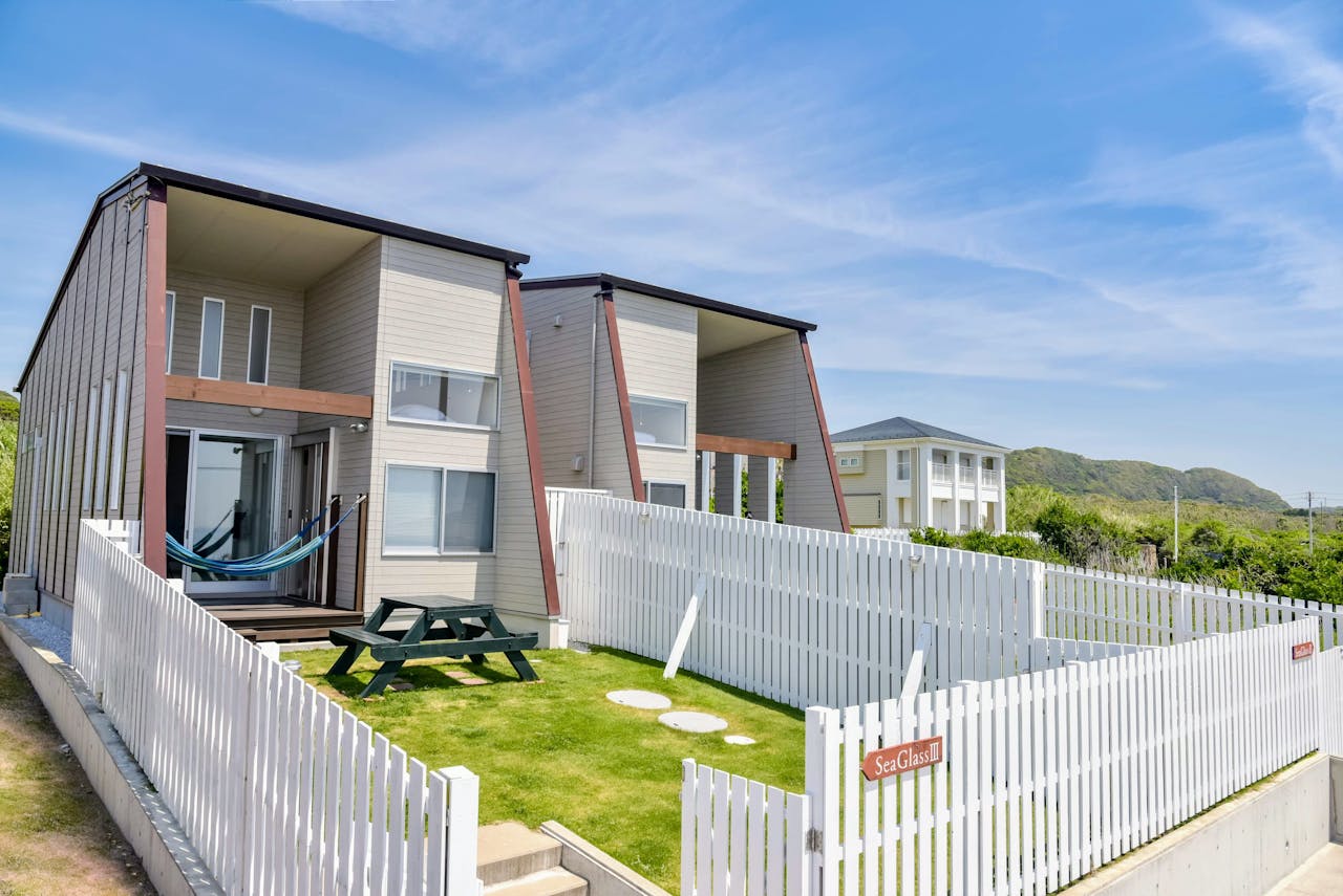 房総半島の最南端南房総市の白浜地区にある「シーグラス白浜」は3つのコテージがあり、すべて海岸まで徒歩1〜3分ほどの距離にあります。